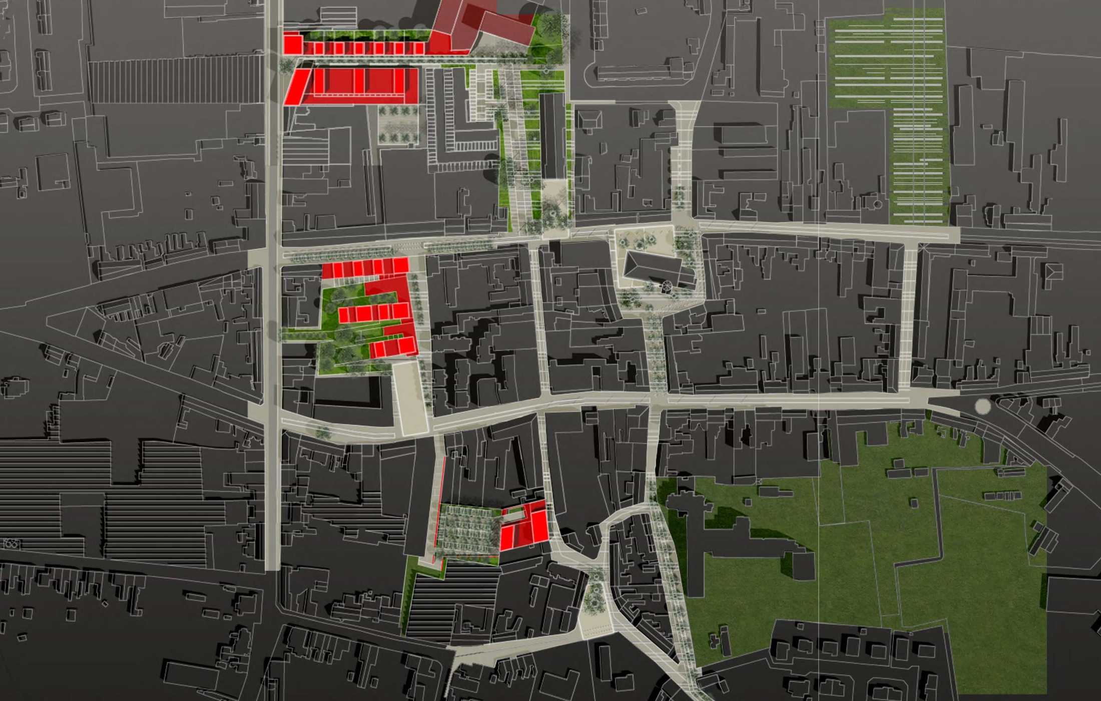 Dit masterplan moet een netwerk van publieke ruimtes ontwikkelen, waarop de verschillende