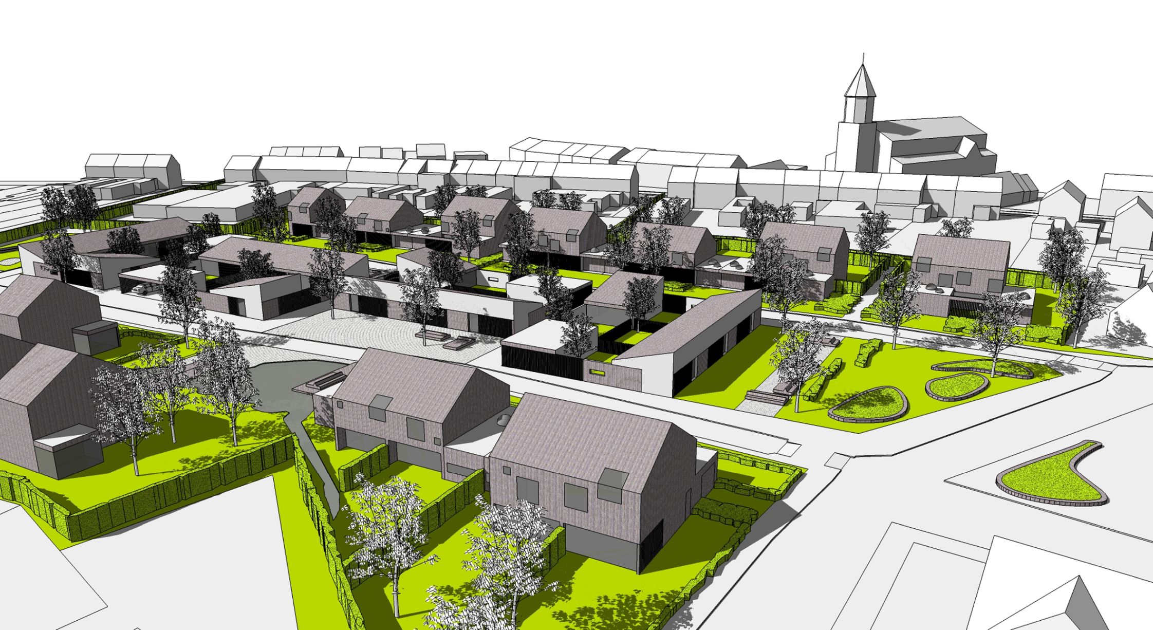 Het gaat om een terrein waar ruimtelijke verdichting aangewezen en ontwerpend te verkennen is. Het is de bedoeling om binnen dit gebied een gedifferentieerd woonproject te realiseren bestaande uit een 30 à 40 grondontsloten woongelegenheden met tuin waarvan een 20 à 24 geschakelde private woningen en een 10 à 16 gelijkvloerse woongelegenheden voor senioren.