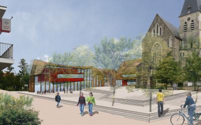 De volledige studieopdracht voor de bouw van een gemeenschapscentrum in Opglabbeek als oonderdeel van én geïntegreerd in een visie voor het masterplan centrumversterking
