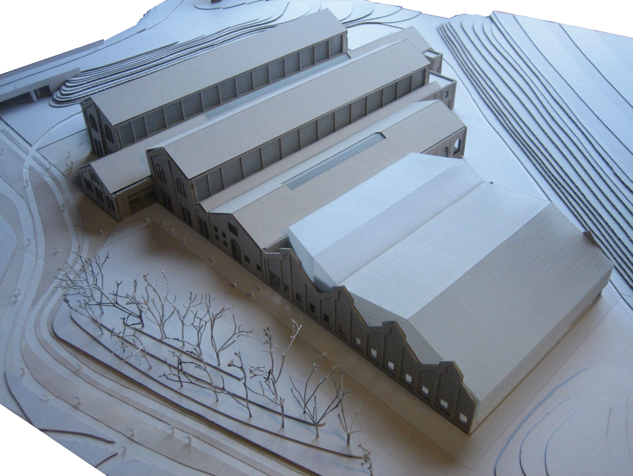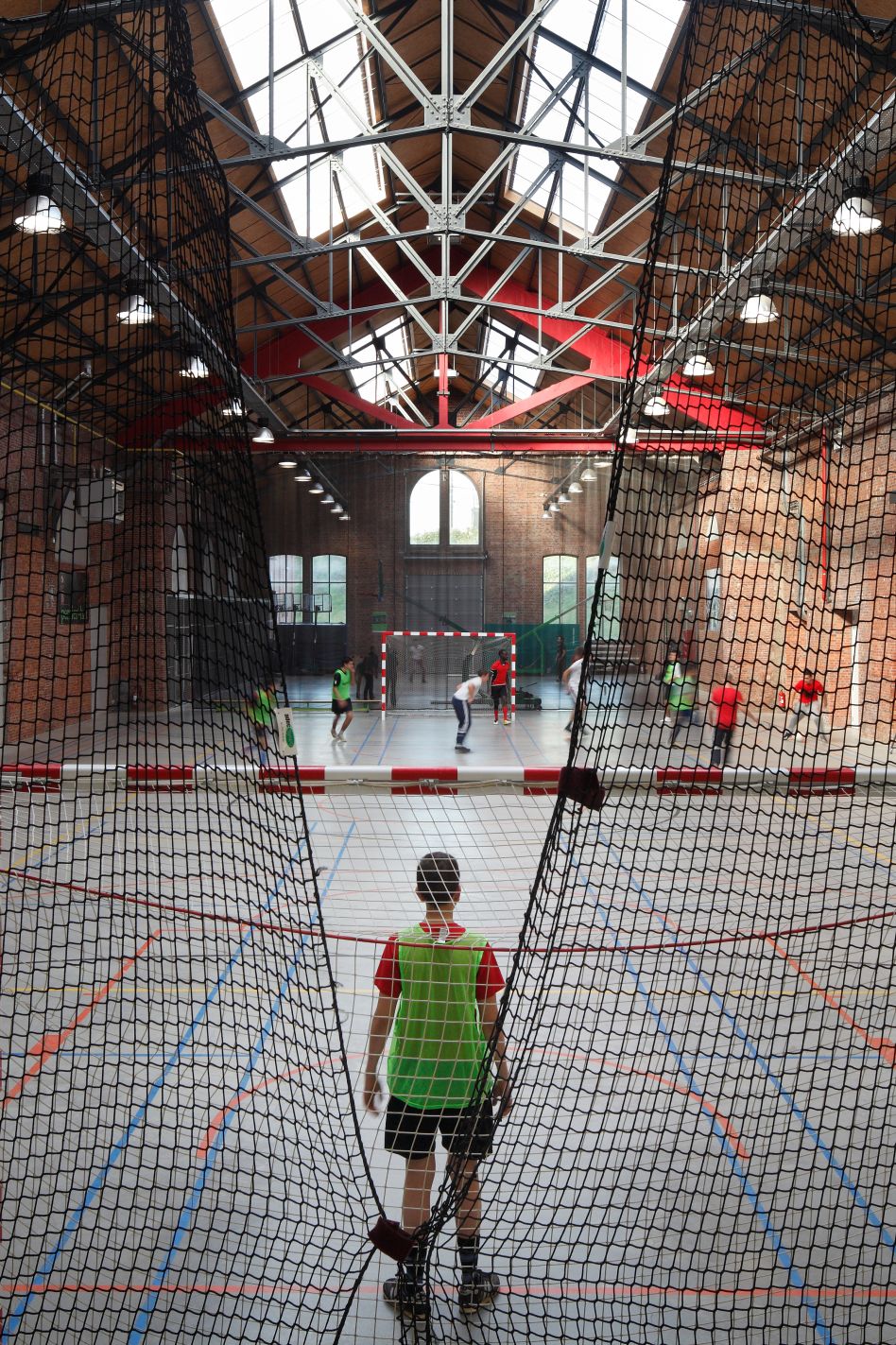 a neighbourhood sports centre. At the level of the shed annex, a new two-storey sports hall will be built for the