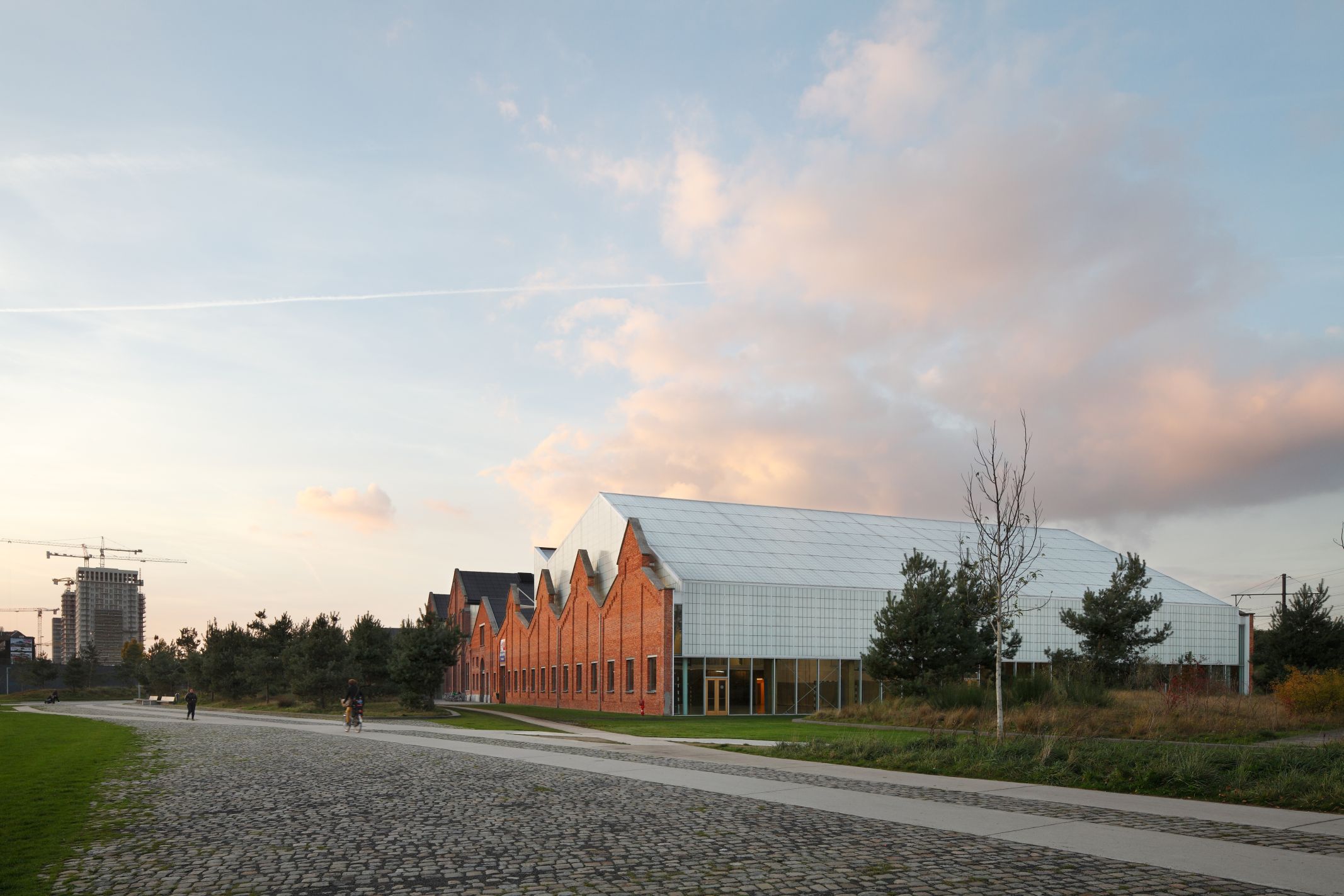 Comprehensive commission for a study for the renovation and transformation of the WDT hangar, located in the prospective Spoor Noord Park in Antwerp, into an events hall, a neighbourhood sports centre, logistics and office space, and for the construction of a new sports hall.