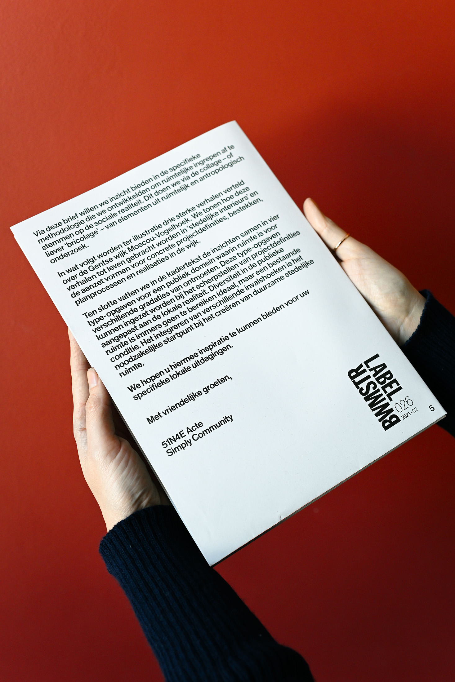Afgelopen jaren bogen 51N4E Acte en Simply Community zich samen over een reeks cases rond diversiteit en de publieke ruimte. Door elementen uit ruimtelijk en antropologisch onderzoek te verweven, ontwikkelden ze een methodologie om te komen tot genuanceerde projectdefinities voor (rand)stedelijke transformaties. Het resultaat is een combinatie van deze invalshoeken tot een facetrijk onderzoek naar ruimte voor diversiteit. Het kreeg uiteindelijk vorm als drie verhalen over de wijk Moscou-Vogelhoek in Gent, gebundeld in een publicatie die is opgevat als een brief aan beleidsmakers.
