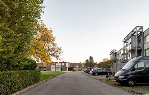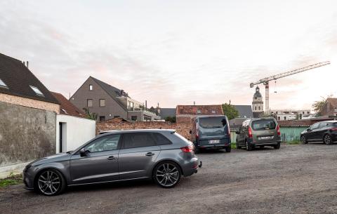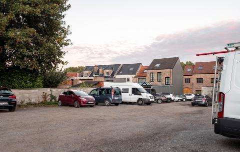 Ward Anseeuw gebruikt het aanwezige hoogteverschil als de stuwende kracht van zijn concept. De rijwoningen aan de straatkant en de patiowoningen in het binnengebied voorziet hij van parkeerplaatsen die op termijn kunnen omgevormd worden tot fietsenstalling, groen- of ontmoetingsruimte.