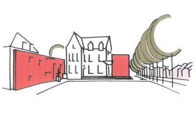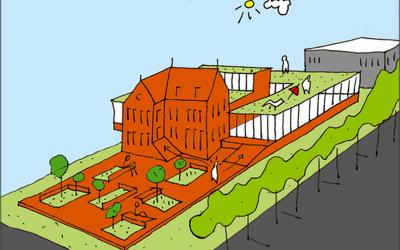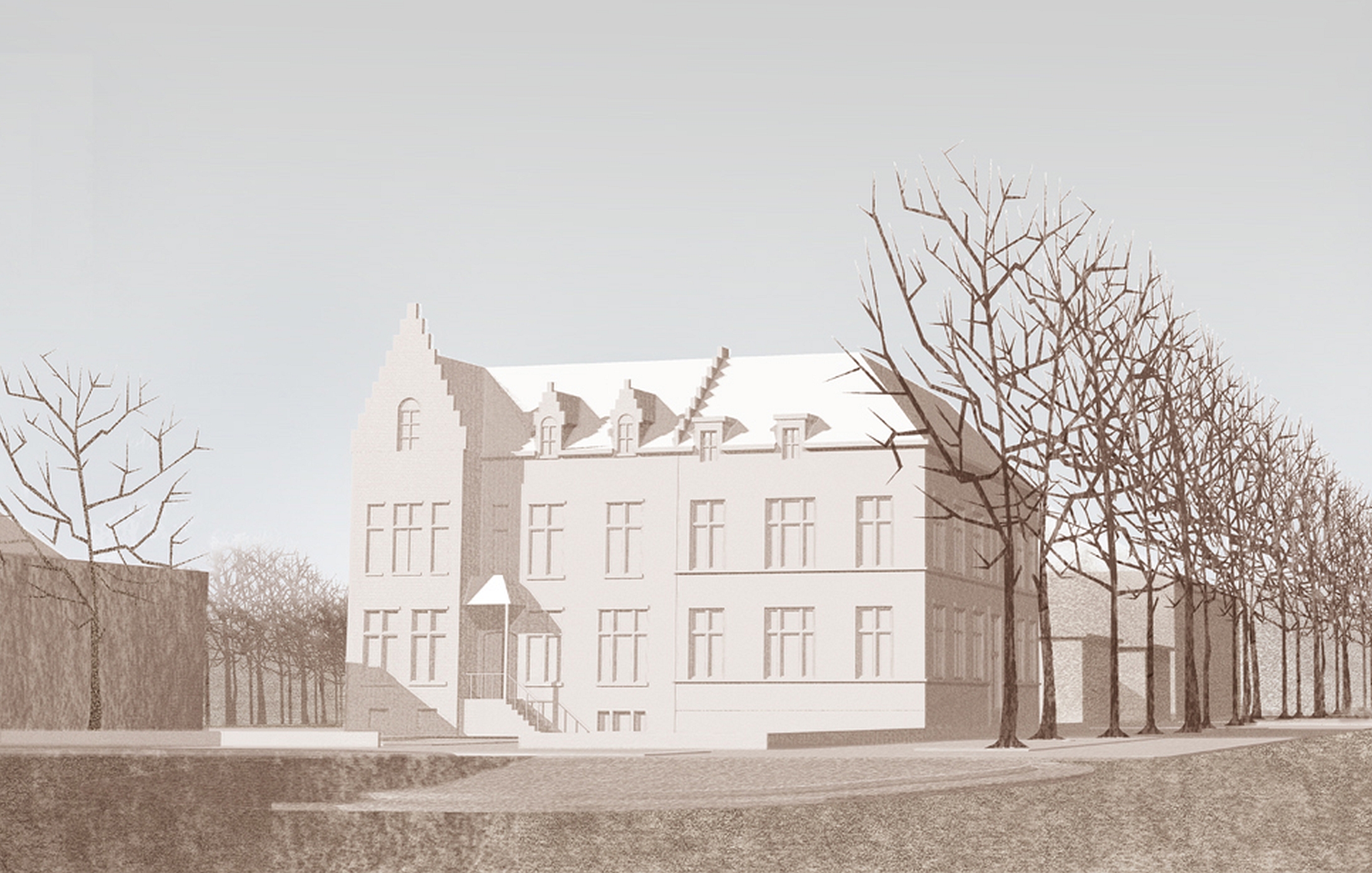 op de plaats tussen het oude gemeentehuis en de school, waarin het bijgebouw van 1991 wordt geïntegreerd. Het project moet harmonieus aansluiten bij het schoolgebouw