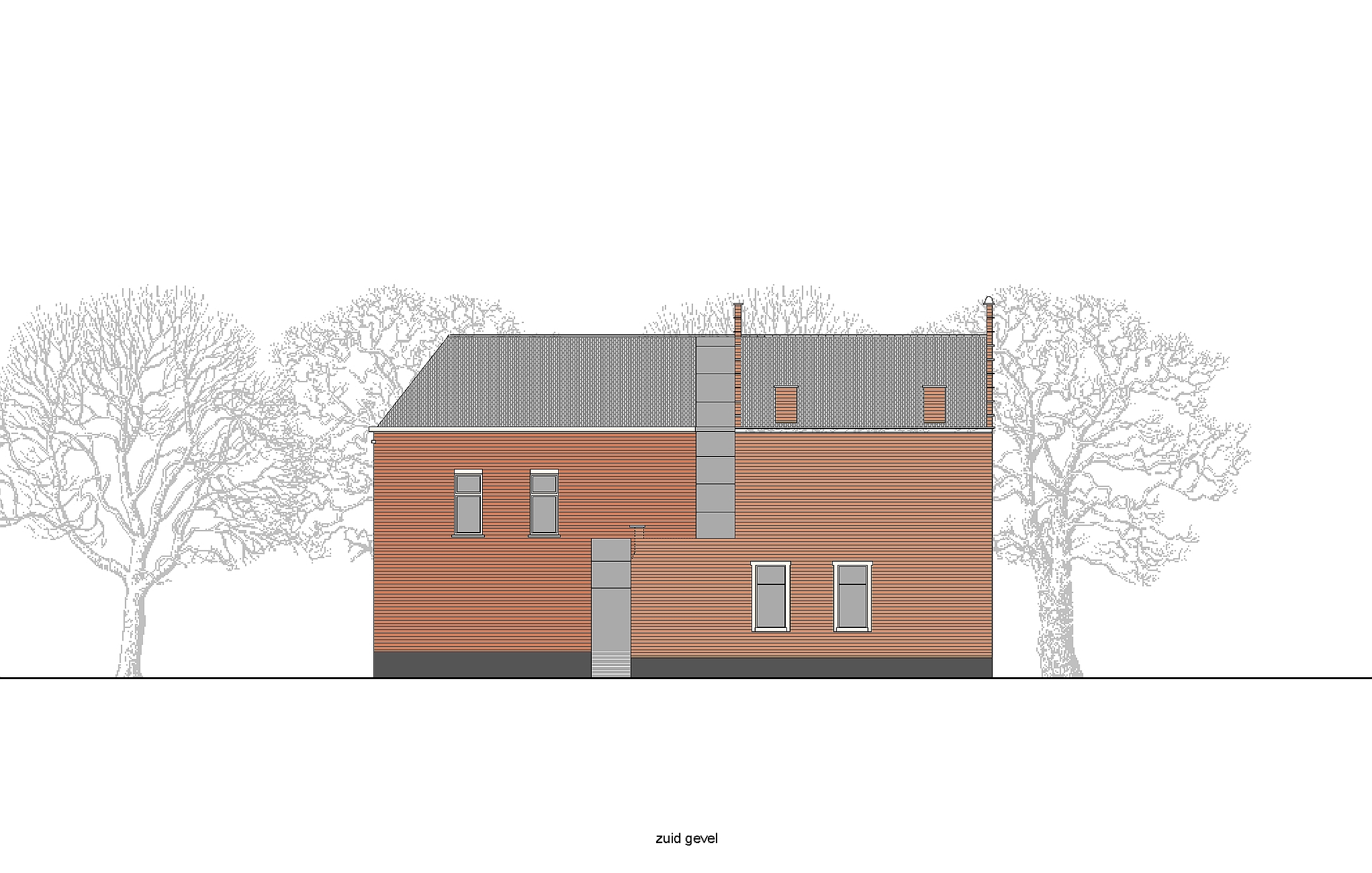 Ook bij de gevelgeleding is bewust rekening gehouden met het bestaande pand. Een teveel aan contrast zou de bestaande gevel teniet doen. De continue gevel vraagt om een specifieke ontwikkeling van de geleding om uiteindelijk aan te kunnen sluiten op de bestaande zuidgevel.