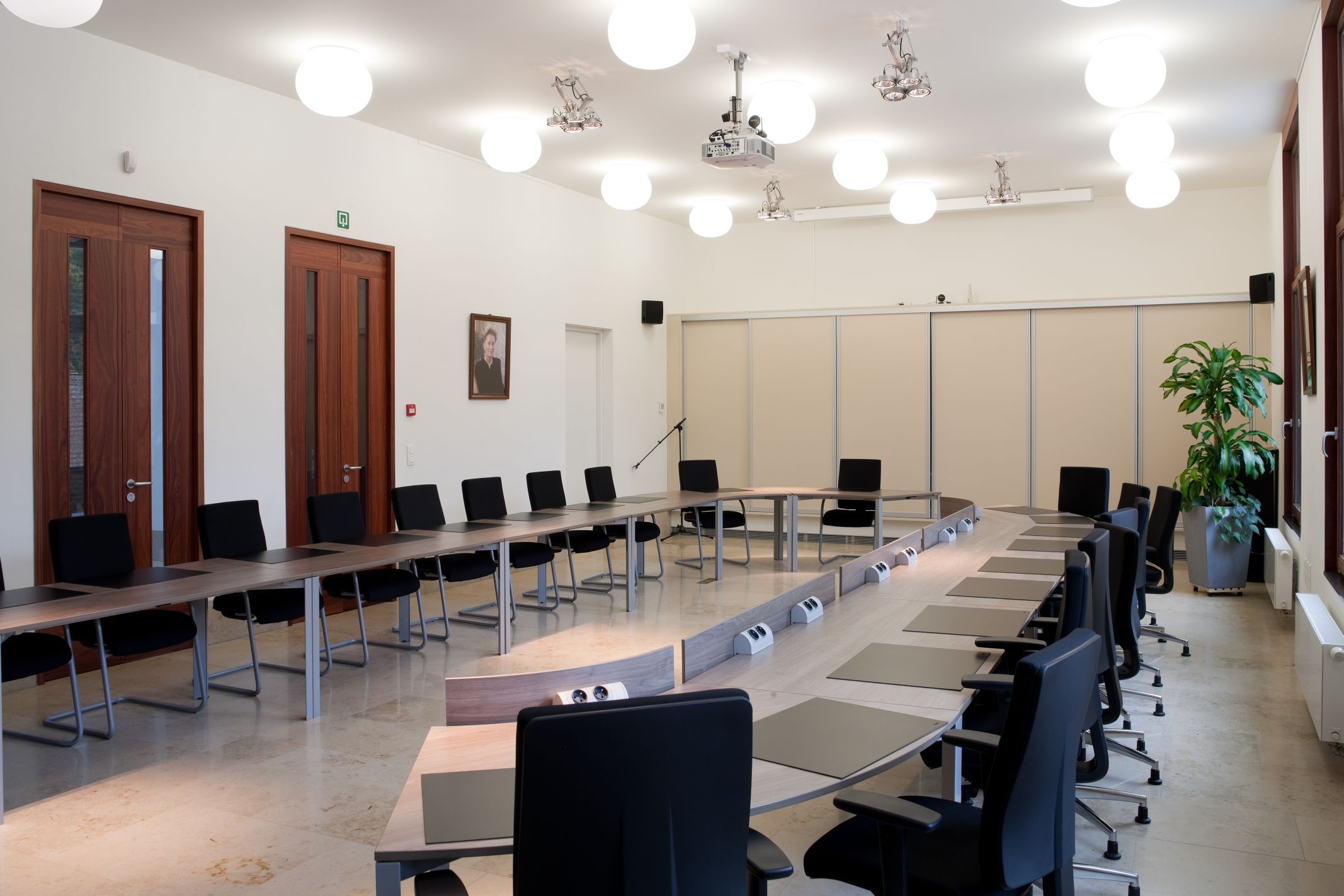 Van het bestaande paviljoen kunnen fundering, kelder, gelijkvloers en enkele wanden behouden blijven. Het glazen dak over de cour brengt alle onderdelen definitief samen en creëert een lichte ontvangsthal en ontmoetingsplaats voor burgers en bestuurders. Er ontstaan flexibeler indelingsmogelijkheden.