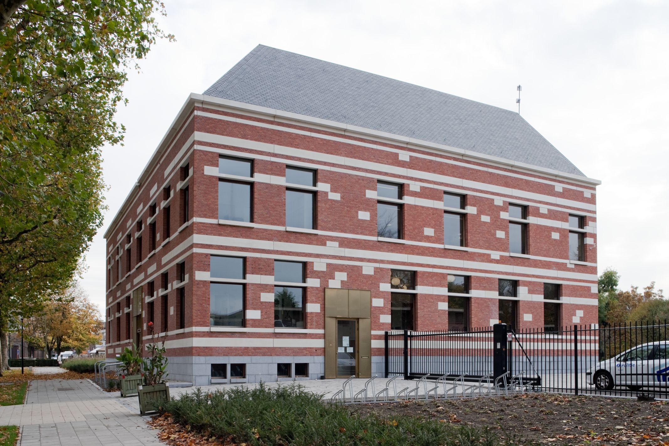 Na onderzoek van de verschillende scenario’s wordt geopteerd voor de oplossing waarbij begin en einde ontstaan uit het huidige volume. Het gebouw kent drie duidelijke adressen, een ceremonieel aan het plein, een publieke entree direct aan de straat gelegen en aparte toegang voor het politiekantoor met bijbehorende dienst materieel.