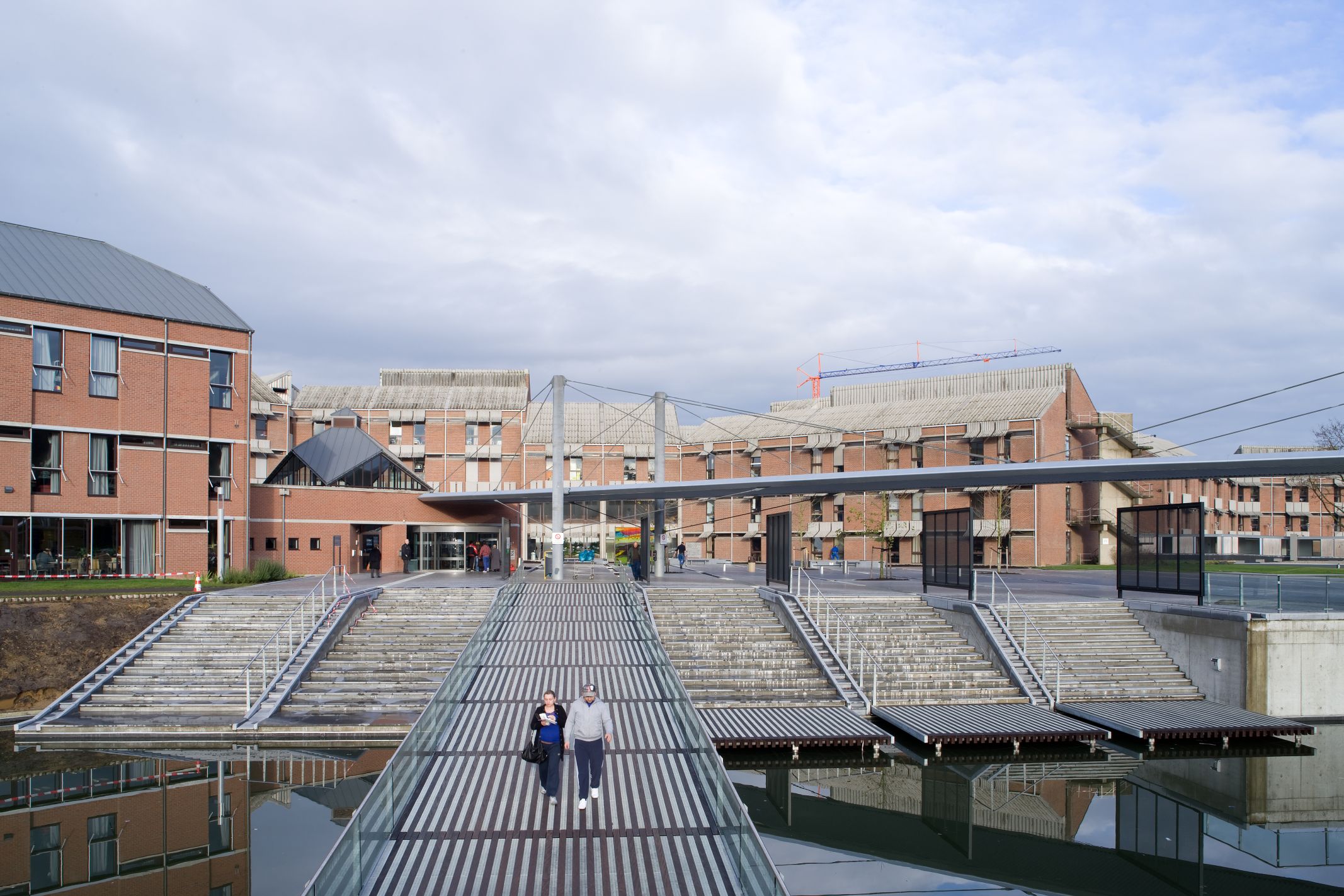Tussen de verschillende gebouwen dient een plein te ontstaan met een grote belevingswaarde voor de verschillende gebruikers, een plein dat aangenaam en gebruiksvriendelijk is op verschillende tijdstippen. Er wordt tegelijk belang gehecht aan de functionele aspecten zoals goede toegankelijkheid en loopafstand … en dit in een strakke budgettaire context.