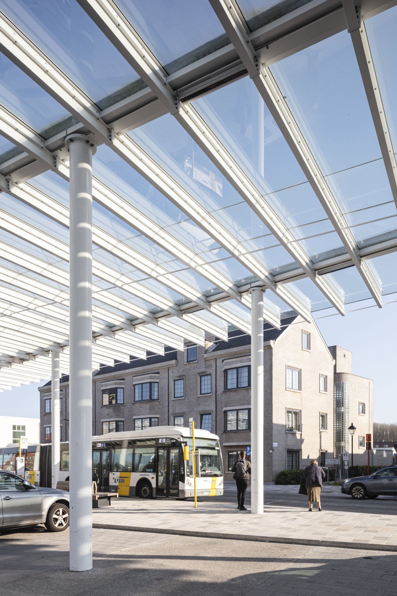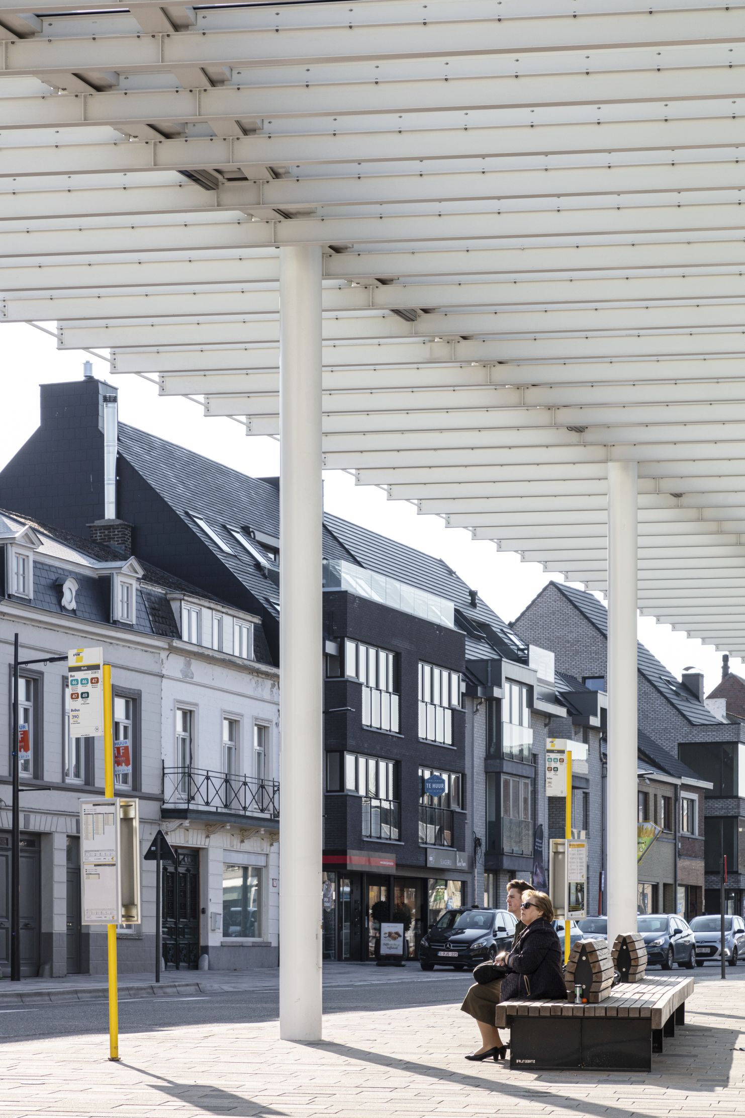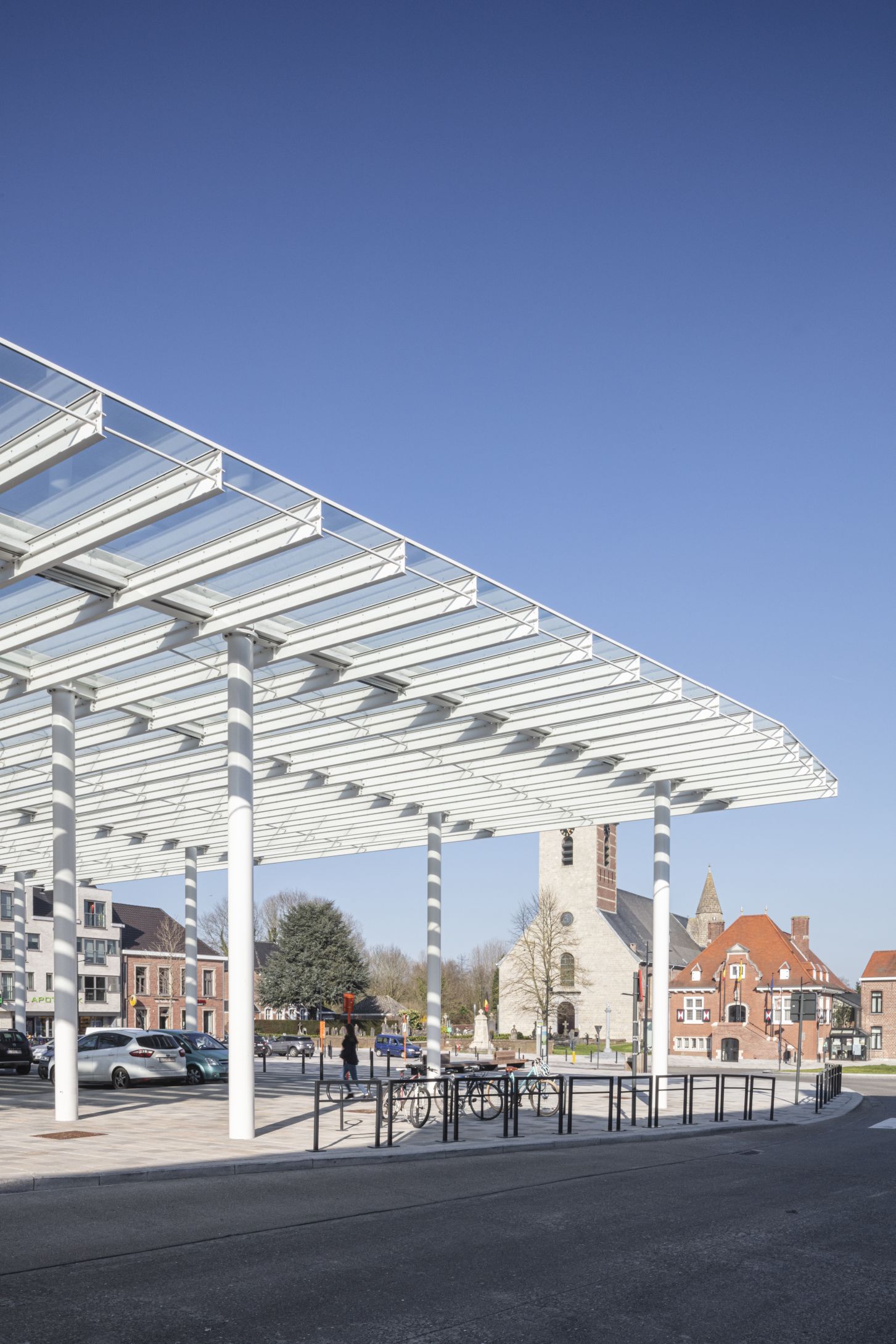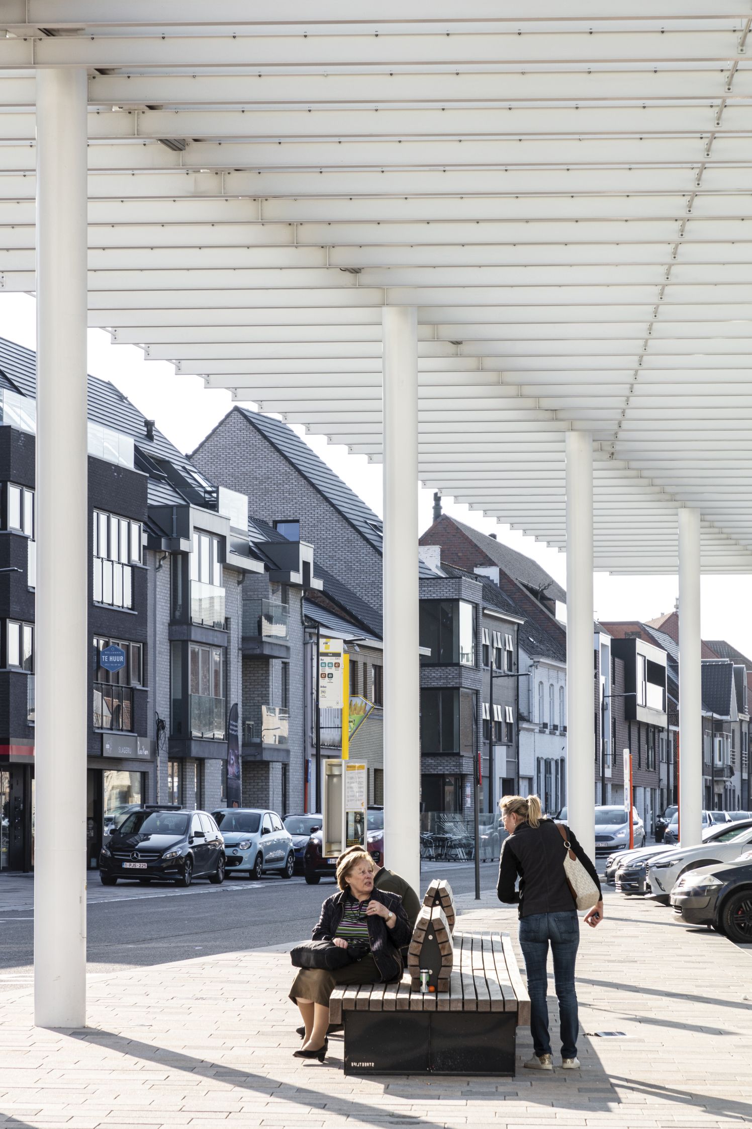 Aldus wordt het plein zelf ‘getekend’ vanuit de herkenbare aanwezigheid van horizontaal vlak en verticale rijen bomen, met die ene boom als contrapunt tegenover de kerk. Het Marktplein wordt gescandeerd in verschillende intervallen, visueel begrijpbaar, zonder echter afbreuk te doen aan de totaliteit van het plein zelf. Maar één langse loop- en zitzone (terrassen) aan de noordzijde van het plein (en dus belicht met zuiderzon) houdt het plein aan elkaar. Een gegeven grote ruimte splitst men niet op: hier wordt ‘perk en paal’ gesteld aan de verkavelingspolitiek. Deze intervalreeks is duidelijk ervaarbaar in een opengelegd rioleringssysteem waarbij op specifieke plekken het hemelwater zichtbaar wordt, waar het geluid van waterstromen hoorbaar is en waar een opvangbekken gebruikt wordt als bassin, als bekken of als drinkbak. Plaats en tijd in één structuur gevat.