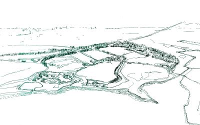- Het introverte karakter wordt omgebogen door de rand van het dorp te transformeren van een rug in een schil die een constructieve en toe-eigenende relatie met het omliggende landschap realiseert.