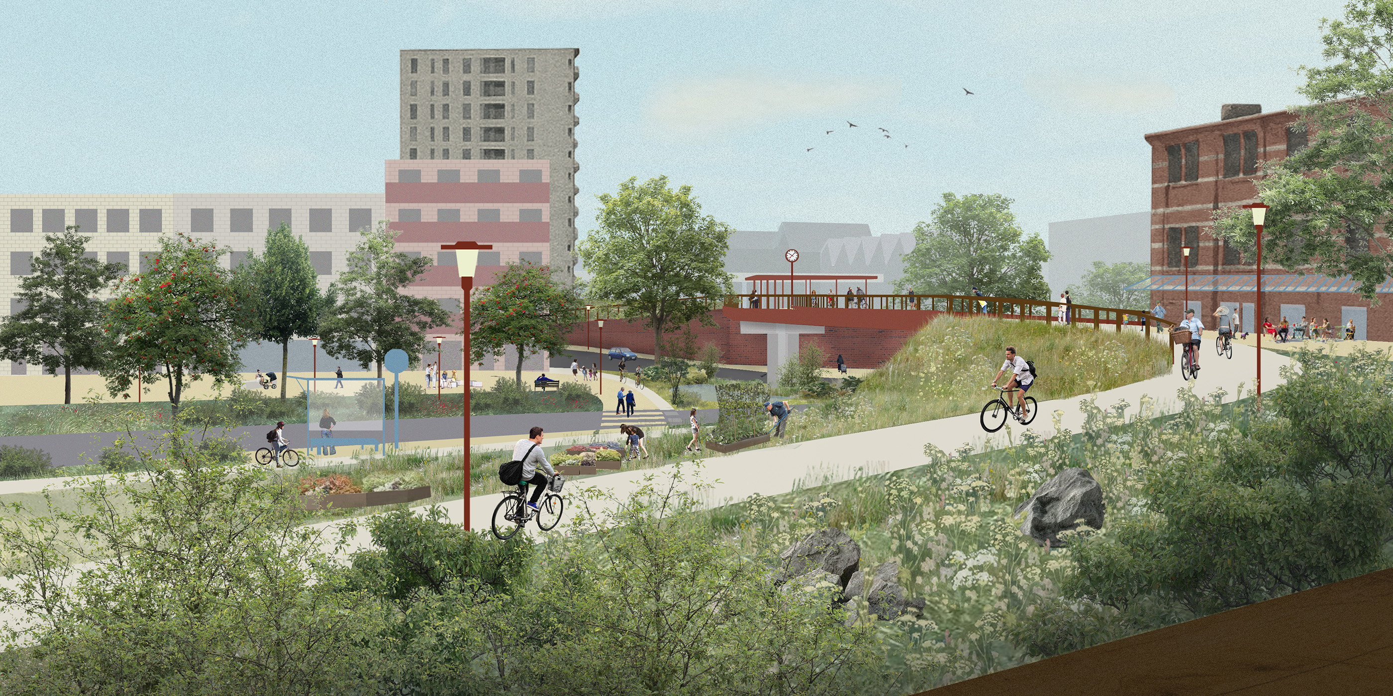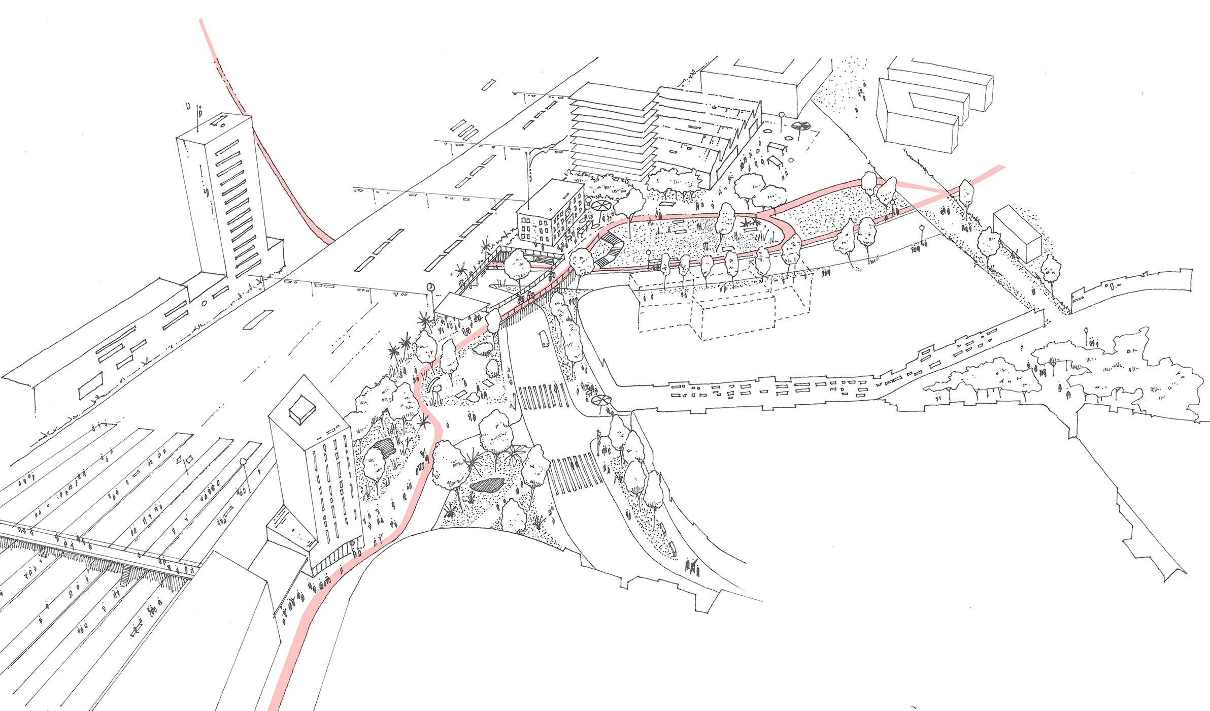 Het ontwerp zet bovendien maximaal in op het behoud van bestaande gebouwen. Er is bijzondere aandacht voor kleinschaligheid, buurtbetrokkenheid en het creëren van meerwaarde voor de directe omgeving. Binnen het complexe infrastructuurproject wordt zo dus niet louter de mobiliteit aangepakt, maar is er ook aandacht voor een leefbare, toekomstgerichte wijk.