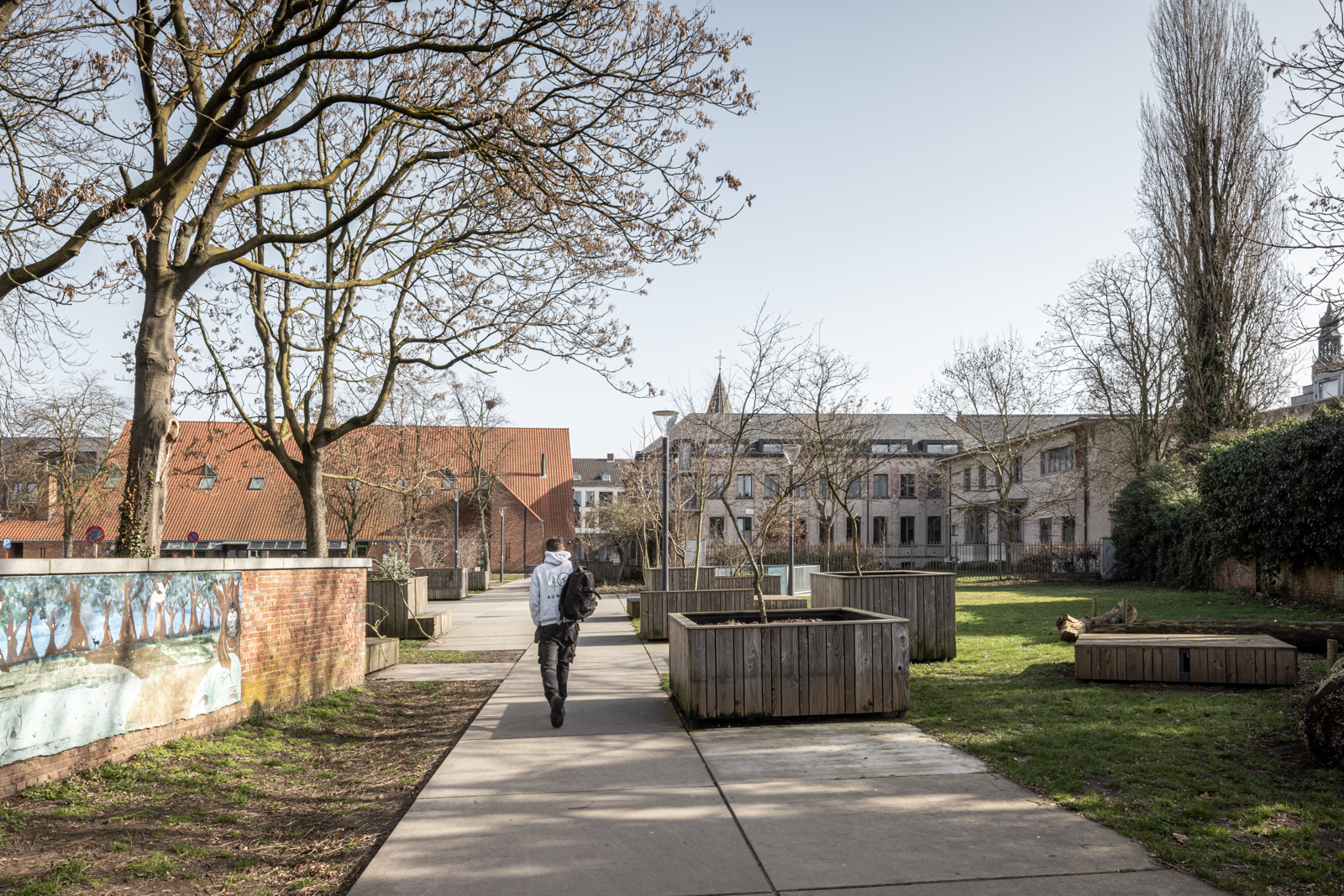 De volledige omgevingsaanleg wordt een toonbeeld van klimaatrobuuste openbare ruimte en speelt in op de klimaatuitdagingen voor het stadscentrum. Een aangename groene omgeving met maximale ontharding, de aanplanting van nieuwe bomen, voldoende kruindekking en bovengrondse wateropvang zijn uitgangspunten voor het ontwerp.