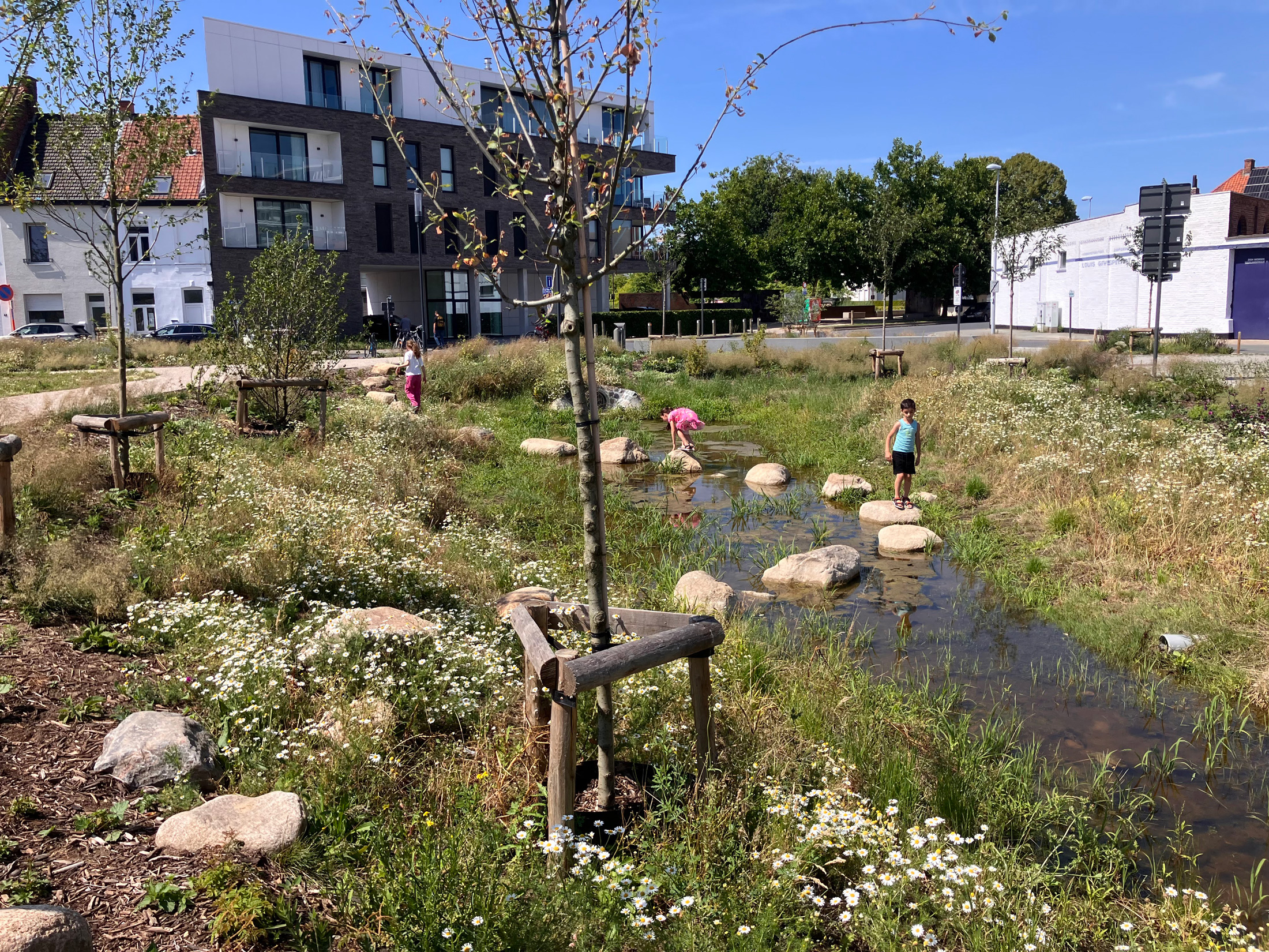 De jury waardeert dat het park van gevel tot gevel werd ontworpen. Ook de zijstraten werden vergroend en ingericht als woonerven met eenrichtingsverkeer. De buurtbewoners werden betrokken door hen geveltuintjes aan te bieden. Via fytoremediërende beplanting wordt de vervuilde bodem op natuurlijke wijze gezuiverd. Voor de creatie van het reliëf werd vertrokken vanuit de ondergrond en werd met beperkt bodemverzet een aantrekkelijk landschap gecreëerd. Het park zal werken als een spons die water opneemt bij hevige regenval en langere droogteperiodes kan overbruggen. Door ruimte te voorzien voor waterinfiltratie en -buffering verhoogt de veerkracht van het watersysteem. Het hemelwater van de aanpalende huizen wordt afgeleid naar de wadi’s in het park.
